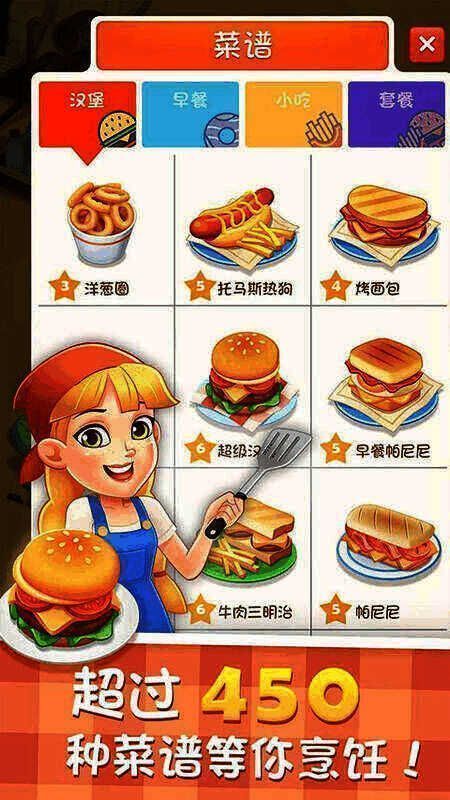 这款游戏采用卡通画面,玩家能解锁不同餐厅、扩大经营业务,完成考验挑战,收获轻松有趣的经营成就,自由体验精彩经营内容。