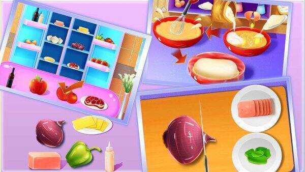 2、游戏提供多种餐具和工具,玩家可使用搅拌机、烤箱、擀面杖等道具,模拟真实烹饪过程,增强游戏沉浸感。