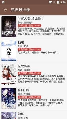 2、热门推荐:每天推送热门小说和排名,还有搜索功能助你快速找书。