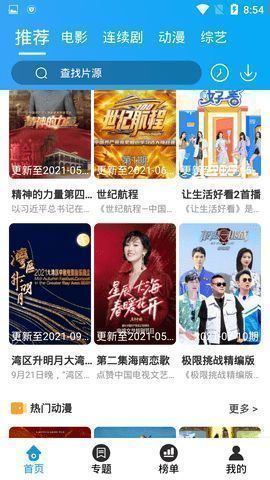 这款软件有热门影视榜单,能自由选择影视、综艺、动漫资源,还可收藏喜欢的剧集,随时下载缓存观看。