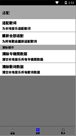 4、返回到主界面,点击适配,可为本地音乐适配歌词;