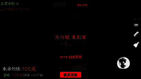 中式彩票手机版新增了10多种不同面额和玩法的新刮刮卡。玩家需以100元初始资金,通过刮刮彩票赚取100万元,从而体验从失败者到老板的转变。目前有大满贯刮刮、快乐3、蓝宝石、超级好运和财富创造三种类型的彩票可供选择,它们有不同的购买成本和中奖金额,还有合作计划,玩家可选择其一与老板合作赚更多钱。感兴趣的朋友快来体验刮擦乐趣吧!