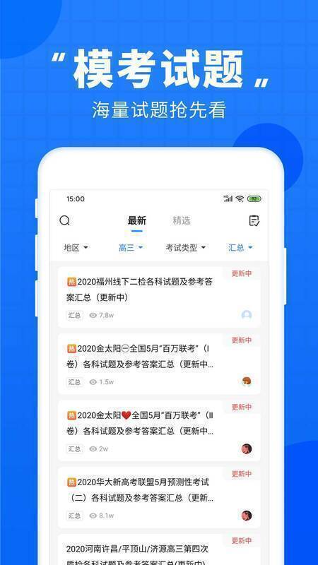 2、【模拟考试】 全国高考卷,北京卷,江苏卷,上海卷,浙江卷,天津卷,百校联考,A10联盟,省统考等海量高考模考答案更新快,答案在线!