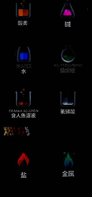 2. 能选择不同类型的化学物质进行组合,观察反应效果。