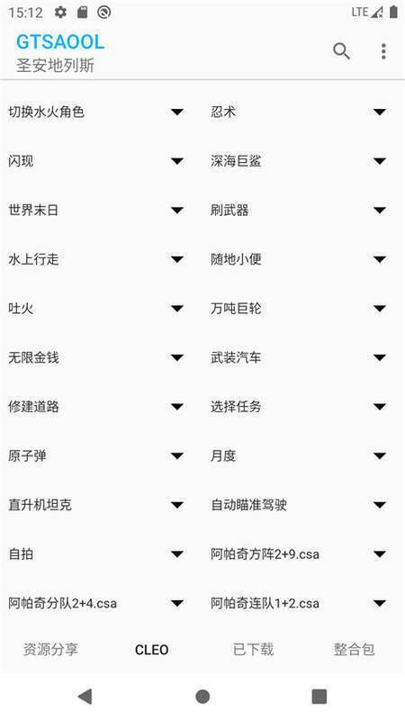 3、软件内置GTASA基础功能,无特别说明的,.csa功能开启后,游戏中自动激活或点击九宫格激活,.csi功能需在cleo菜单(从屏幕中间划下)激活。