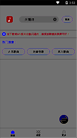 歌词适配软件官方版是一款支持将音乐转换为 MP3 格式的下载工具。你能够搜索那些突然触动你心灵的音乐,或是只记得几句歌词却叫不出名字、始终在耳边回响的歌曲。搜索完成后,支持一键下载。它允许用户通过歌词快速查找歌曲,对于仅知晓部分歌词却不知歌名的人而言,选择在线收听或是一键下载都极为便捷。该软件拥有丰富的音频资源,界面无广告,多区域音频可免费下载,MV 能在线流畅播放。此外,它还提供多种音质选项。