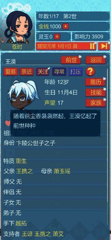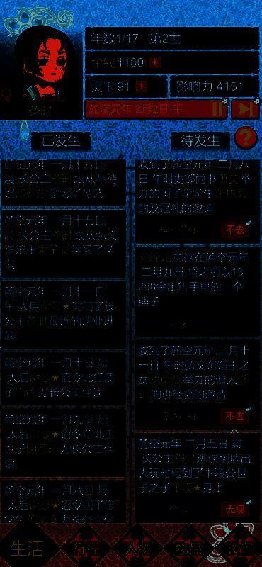 在游戏中,玩家将化身为在十三岁到三十岁间经历无数次转世的清滦公主。身为高贵却无力掌控自身命运的公主,你能在每一世逐渐掌握主动权,利用转世先知的能力干预他人生活,按自己的意愿改变他们的命运。