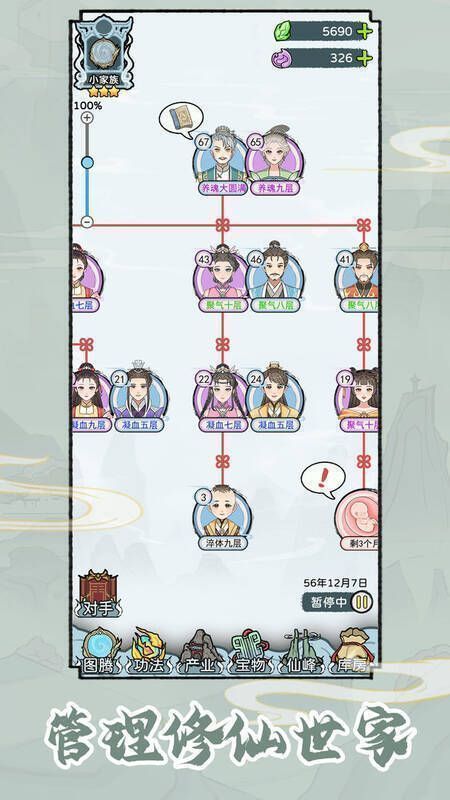 玩家要根据家族发展阶段与目标制定合理战略,如优先发展栽培设施或探索未知领域;面对家族内外事件,像妖兽入侵、家族联姻等,需做出明智决策维护家族稳定;引导成员修炼突破境界,提升家庭实力;派遣成员探索仙途,寻觅珍贵修炼资源与机遇。