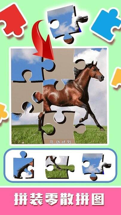 游戏拥有丰富的拼图图案,涵盖动物、植物、交通工具等多个主题,激发孩子学习兴趣,助其了解更多知识。适合不同年龄段的拼图难度,从简单任务到复杂挑战,全面培养孩子动手能力和逻辑思维。清新明快的卡通画风和温馨音效,让孩子在愉悦氛围中享受拼图成就感。直观简洁的操作方式,让任何年龄段孩子都能轻松上手,家长可放心让孩子娱乐学习两不误。
