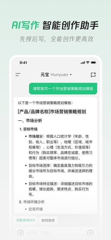 2、元宝具备强大的语言理解与输出能力,能精准理解撰写报告、方案、代码等需求,给予更多启发,让内容创作更为轻松。