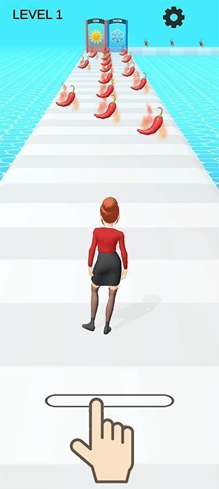 火焰女孩手机版游戏可供下载,在游戏里,玩家将化身为一位迷人的女性角色,借助简单的滑动操作开启一段充满激情且富有创意的旅程。在《火焰女孩》游戏中,玩家要精准操控角色左右移动,收集辣椒以增加辣度指数,进而逐步解锁更多极具吸引力的风格。在抵达终点线前,选择太阳的门将能进一步提升热度,吸引更多目光。面对辣椒和冰淇淋的抉择时,务必优先收集辣椒,让魅力值飙升至顶点,从而顺利通关每个关卡。