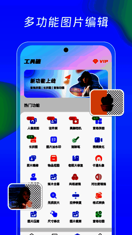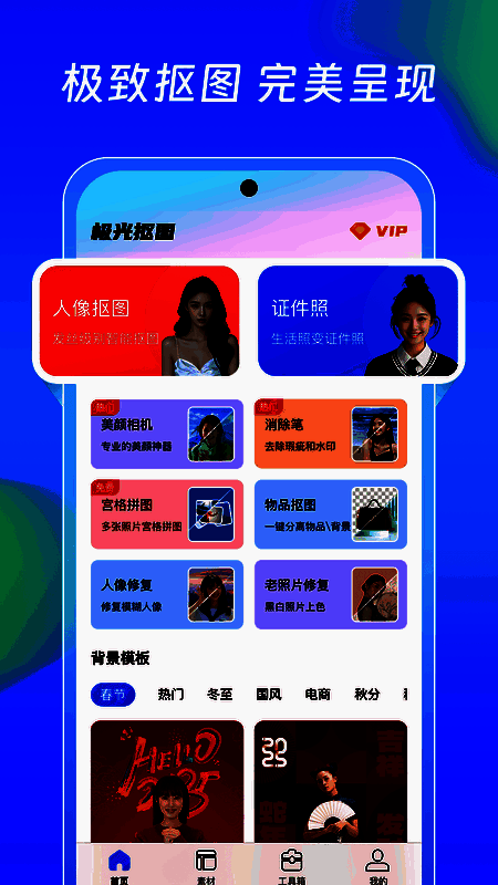 《极光抠图》是一款集多种图像处理功能于一身的应用,它巧妙地整合了人物抠图、美颜相机以及证件照处理等实用功能。其显著优势在于强大的智能AI识别技术,能够精确捕捉并处理图像细节,让照片处理变得既简单又高效。无论你是在日常生活中想快速美化照片,还是在专业场景下对图像质量有严苛要求,极光抠图都能为你提供满意的解决方案。