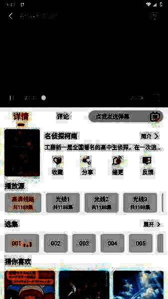4、点击作品封面进入详情页,能看到作品简介、播放源以及选集。