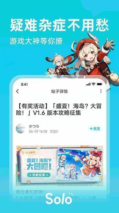 Solo游戏平台通过玩家自主生成优质内容,吸引了不同游戏圈的玩家,为游戏爱好者提供一站式交流和体验服务。在这里,玩家能与同好分享交流,平台具备最新版本信息、高质量游戏攻略、专家技术分享、有趣日常等功能,玩家总能找到心仪的游戏圈。此外,还有官方游戏玩家加入社区,玩家不仅能了解官方福利,还能与策划者和制作人近距离交流,表达对游戏的看法。感兴趣的朋友,快来下载使用吧!
