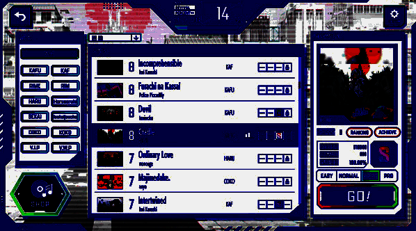 3、接着选择要挑战的曲目以及难度,点击“GO”开始。