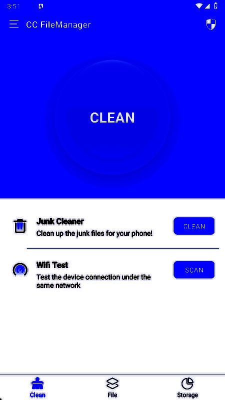 CC文件管理器的界面设计简洁明了,用户能轻松找到所需功能和文件。主界面分为本地文件、网络文件、安装包和分类视图四个部分,用户可借助分类视图功能快速查找文件。
