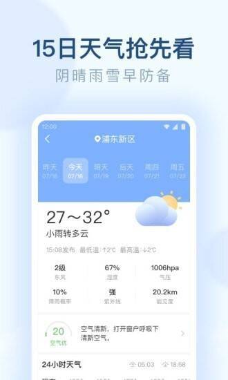 1. 提供实时更新的天气信息,精准预报未来24小时及7天天气,方便用户查看。