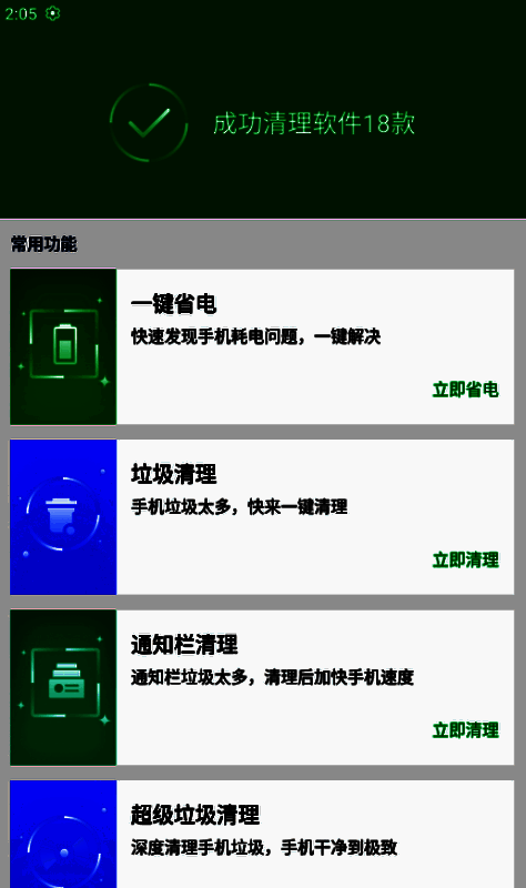 4、集电池优化、垃圾清理、手机加速于一体的专业管理系统。