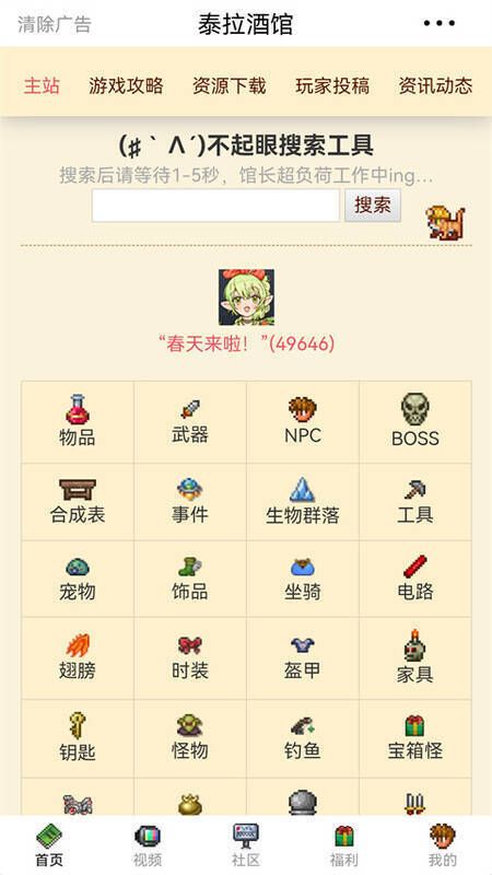 泰拉酒馆是一款专为泰拉瑞亚1.4版本打造的资讯攻略app。它能收集、分享游戏攻略wiki、下载资源、合成表、武器与boss大全等资讯,集图鉴、攻略、视频、社交功能于一体,玩法便捷有趣。玩家还能观看各种泰拉瑞亚攻略及搞笑游戏视频,既感受游戏乐趣,又提升游戏水平。