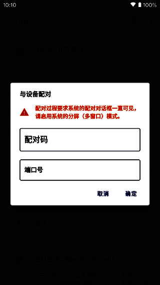 (4)启用系统的分屏(多窗口)功能(必须开启,因为一旦离开“无线调试”,配对过程将停止)。