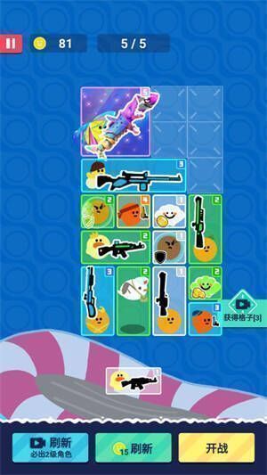 2、进入关卡后,将初始角色放置在对应格子里,相同角色可合并升级。