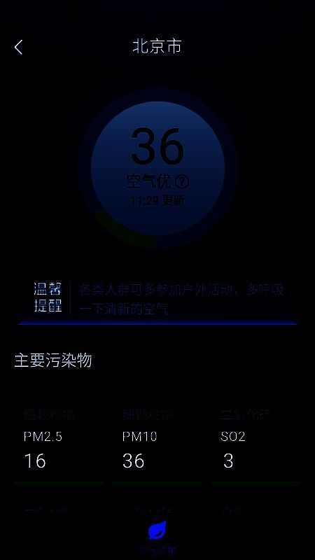 2、采用舒适的配色方案,即便查看恶劣天气信息,也能让用户保持平和心态。