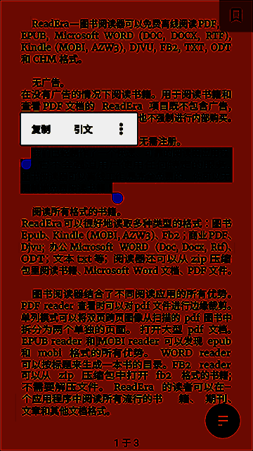 1、多格式兼容:Readera支持TXT、DOC、PDF、Kindle(MOBI、AZW3)、Fb2、Epub、Djvu等常见电子书格式,用户无需安装多个阅读器。