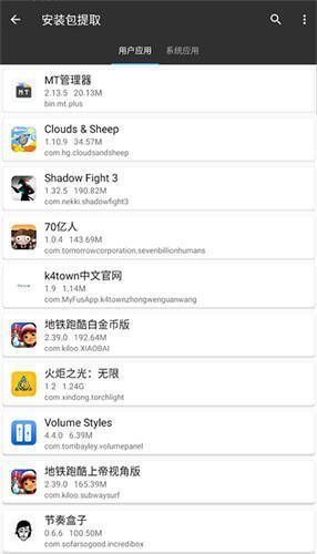 4、长按需要提取的应用,点击右下角底部图标即可提取。