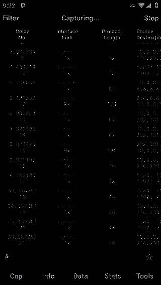 - 点击Info,实时监控网络连接与数据包收发情况。