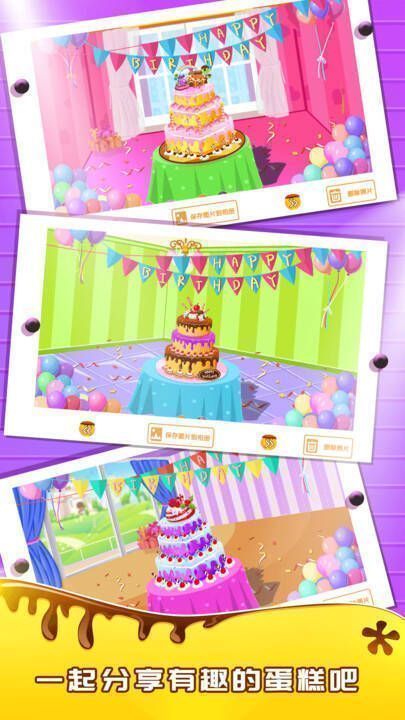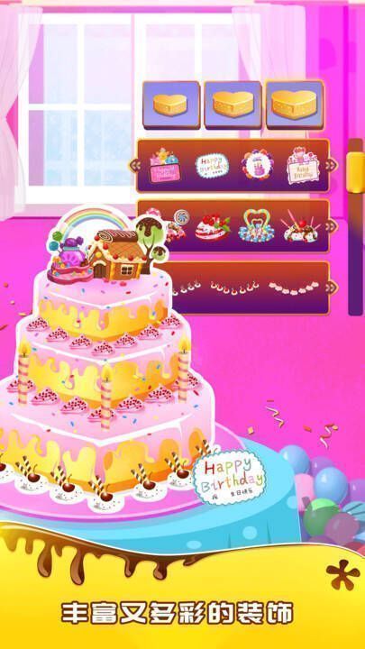 2、创意装饰系统:多种颜色的奶油、糖果、果酱等可自由搭配,打造独一无二的蛋糕造型。
