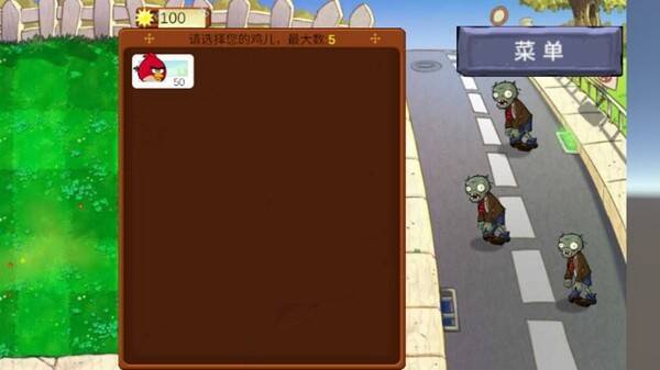 4. 将愤怒的小鸟和植物大战僵尸两个经典游戏元素融合,创造出全新玩法。