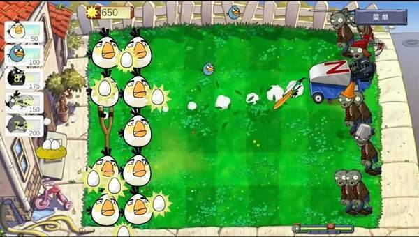 游戏将植物换成小鸟,玩家用小鸟打击僵尸。