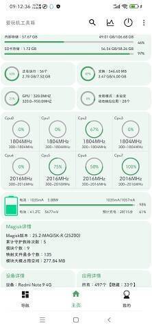 4. 打开爱玩机工具箱,授予权限,点击右上角“暂不授权”。开启后,大部分手机App的CPU占用显示为0,参数更换完成。