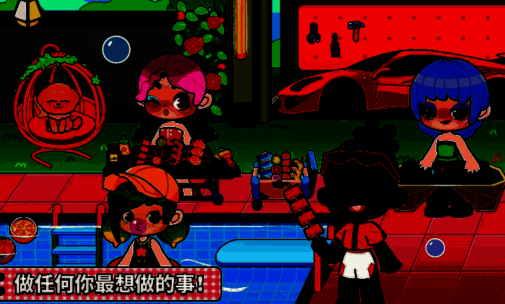 点亮多彩生活:在游戏各处放飞想象,如带宠物游泳、逛街探店、组织活动等。