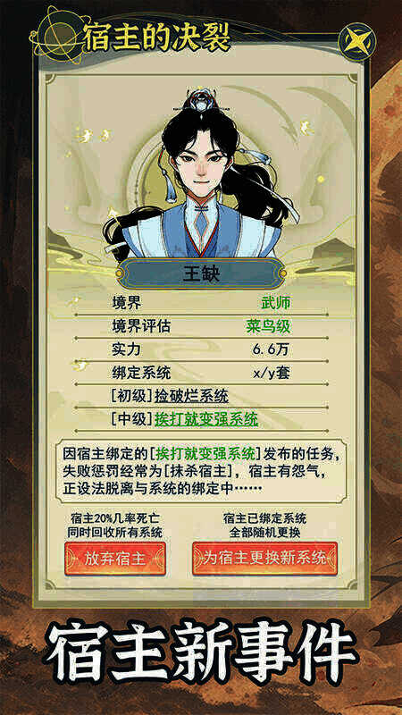 3、系统与宿主绑定后,宿主每月自动增加一定实力。