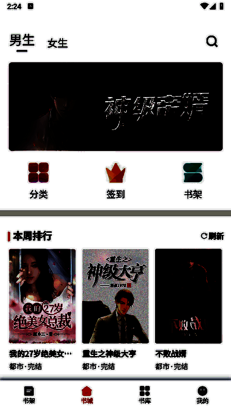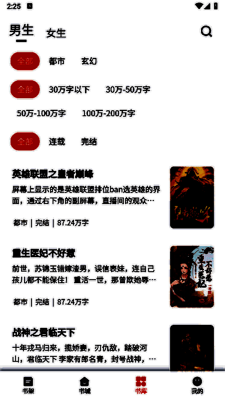 2、进入软件,“书城”页面有丰富小说资源,适合不同性别读者。