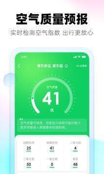 1、拥有空气质量监测功能,用户能随时查看当地空气质量指数、PM2.5等数据。