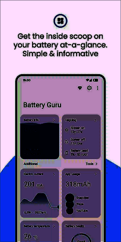 该软件能显示电池使用情况信息,测量电池容量mAh并显示估算值,还通过实用的充电技巧帮助用户改变充电习惯,减少电池损坏,延长电池寿命达200%。用户使用BatteryGuru可轻松管理电量、检测电池、查看电量损耗,体验多种充电模式,让手机电池更耐用。