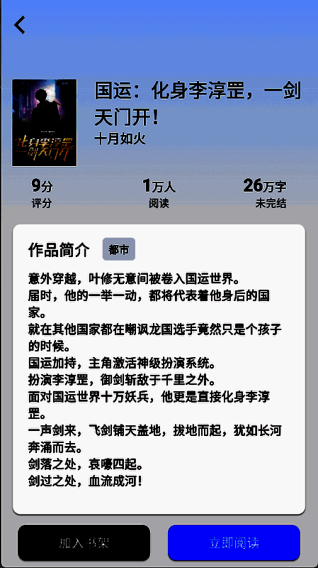 加入书架的操作也很简单,点开喜欢的小说进入详情页,点击“加入书架”,回到首页就能在“书架”页面查看。软件评价颇高,提供免费热门小说资源,不断更新,还会精准推荐、详细分类,让用户告别书荒。