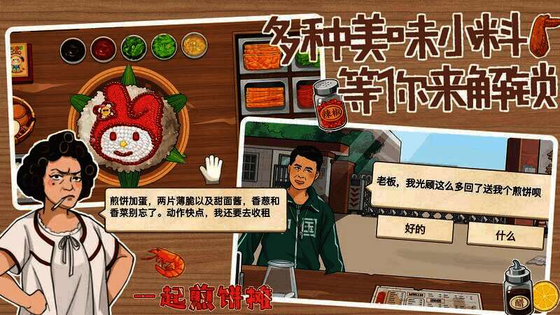 1. 煎饼制作:玩家需按顾客订单选食材,快速做出口感符合要求的煎饼。