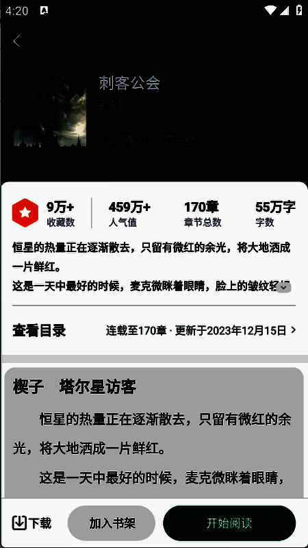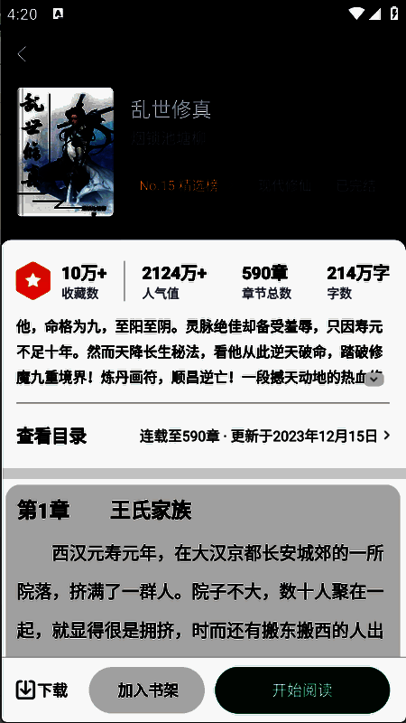 5、直接点开想看的小说资源进入详情页,点击“开始阅读”。