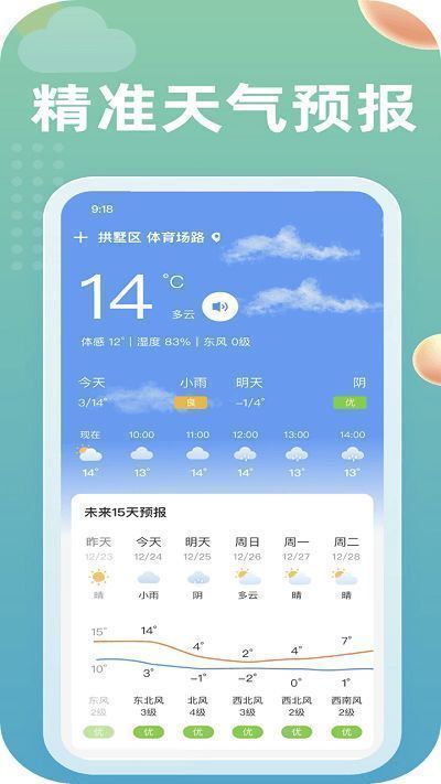 这款软件提供的天气信息十分准确,用户可放心查看,能知晓第二天及未来15天的天气信息,带来轻松简单的天气查询体验,清晰显示最新天气变化。