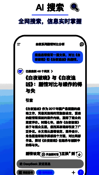 DeepSeek最新安装入口是一款极为实用的AI智能辅助工具,一经问世便在网络上引发了巨大的关注。这款国产AI智能软件,其功能丝毫不逊色于chatgpt。它不仅能够实现智能对话,还能依据用户的需求完成各类总结和报告,有效提升用户的学习与工作效率。此外,它还能帮助用户快速答疑解惑、生成内容以及处理和分析数据。感兴趣的朋友,赶紧下载体验吧。