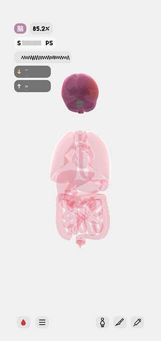 4、用手指向屏幕两边拖动,人体器官会分开显示,便于查找对应器官,点击屏幕中央,器官又会聚拢。