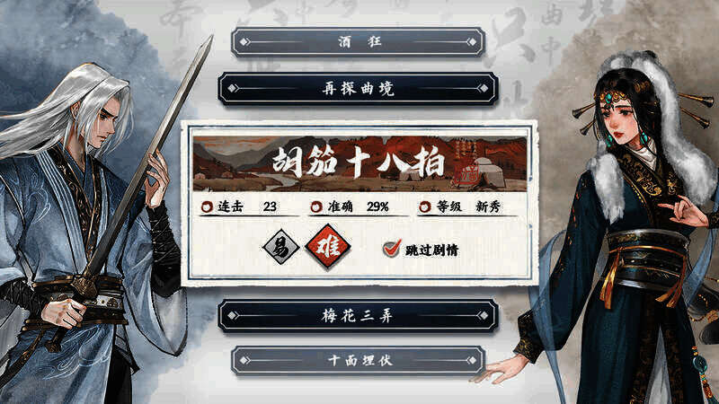《曲中剑2025最新版》以匠心独运的国风水墨风格画面精心打造,是一款别具一格的音乐节奏武侠格斗手游,为玩家打开了通往奇幻武侠世界的大门。游戏画面将国风水墨的神韵展现得惟妙惟肖,每一帧都宛如一幅精美的水墨画卷。通过细腻的动画和精彩的剧情,充分展现了侠士的情感纠葛与江湖恩怨,让玩家在战斗之余能体会到江湖的侠骨柔情与快意恩仇。