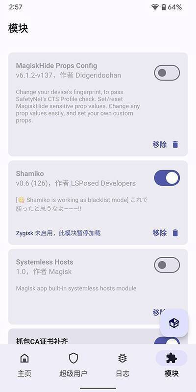 1、先确保手机成功刷入Magisk完成root,然后打开Magisk Delta,点击右下角的模块选项。