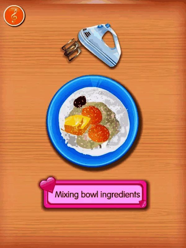 2、混合搅拌:依照食谱指示,玩家需按正确顺序将食材混合并搅拌均匀,为烘焙做好准备;