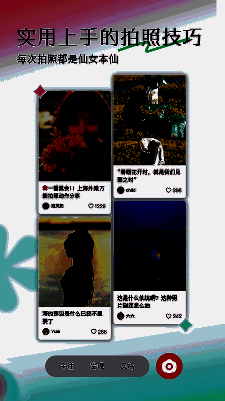 各种滤镜、贴纸等可直接在手机上免费使用,操作简便;素材库每天不定期更新大量美化信息,带来终极拍摄体验;用户可随时查看全面的滤镜,即便初学者也能自由掌握拍摄技巧。