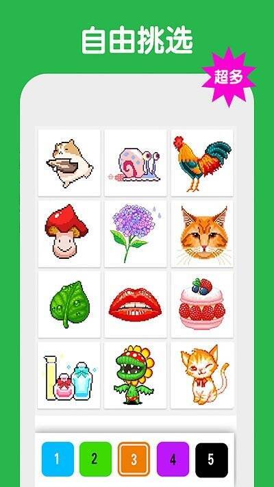 - 像素图案设计丰富,涵盖动物、风景、人物等多种主题,让玩家感受像素艺术魅力。