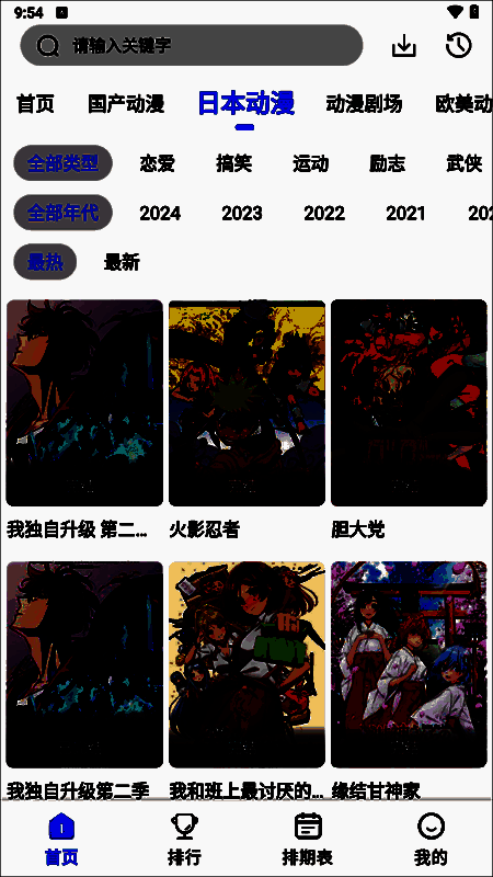 3、在排期表界面,能了解每一天的动漫更新计划。